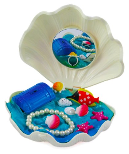 Jewels of the Sea. Kids Toy Jewelry Box. Sea Shell Jewelry Box w/ Lights and Music. Includes 2 Pony Tail Holders, Pearl Bracelet, Seashell Earrings, Brooch, Ring, and Jewelry Box. Made of Plastic. Ages 3 and Up.SAVE NOW on Black Friday offers below!